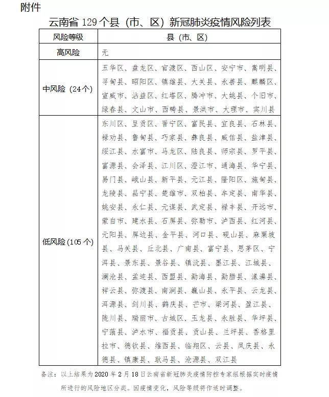 云南發(fā)布第10號通告:云南省應(yīng)對新冠肺炎疫情分區(qū)分級防控的實(shí)施意見
