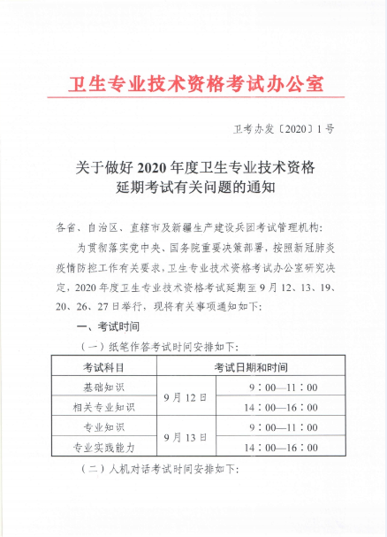 關(guān)于延期舉行2020年護(hù)士執(zhí)業(yè)資格考試的通知