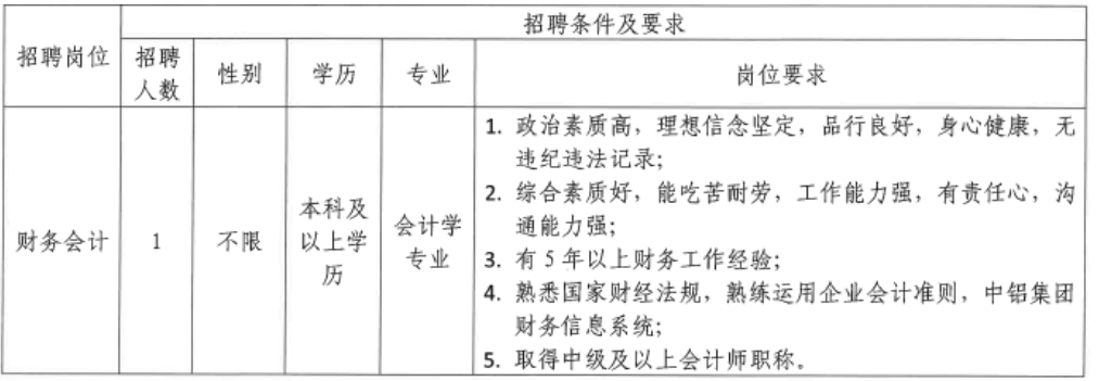 云南云鋁匯鑫經(jīng)貿(mào)有限公司公開招聘財務(wù)會計人員的公告