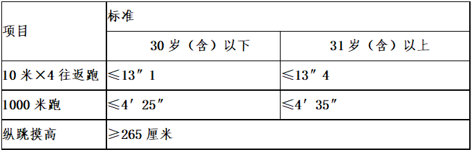 2.體能測試為達標制,并采取一票否決制。達到規(guī)定項目標準即為合格,否則為不合格,進入筆試環(huán)節(jié)。