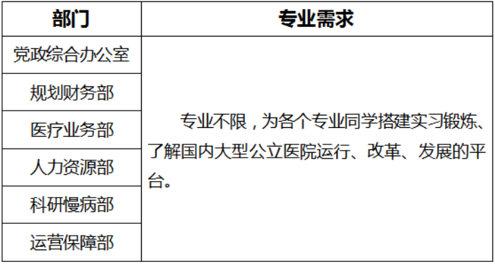 (一)實習部門和專業(yè)需求(每人可申報2個部門)