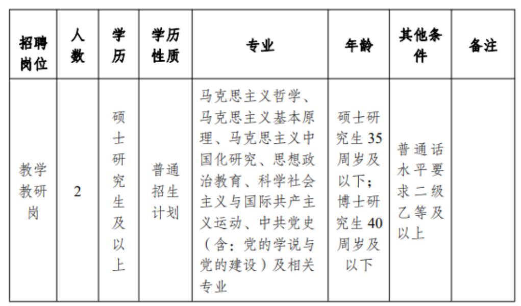 本次招聘崗位為楊善洲干部學(xué)院事業(yè)編制內(nèi)教師崗位,招聘人數(shù)2人,專門從事楊善洲干部學(xué)院教學(xué)和教研工作,參與課程、課件、教材和現(xiàn)場教學(xué)點(diǎn)的開發(fā)與研究,承擔(dān)培訓(xùn)班的授課任務(wù)等具體工作,崗位要求如下:
