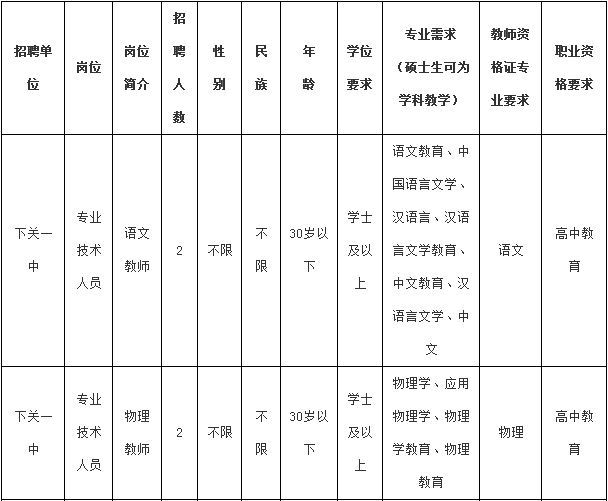 云南省下關(guān)第一中學(xué)2019年教師招聘要求