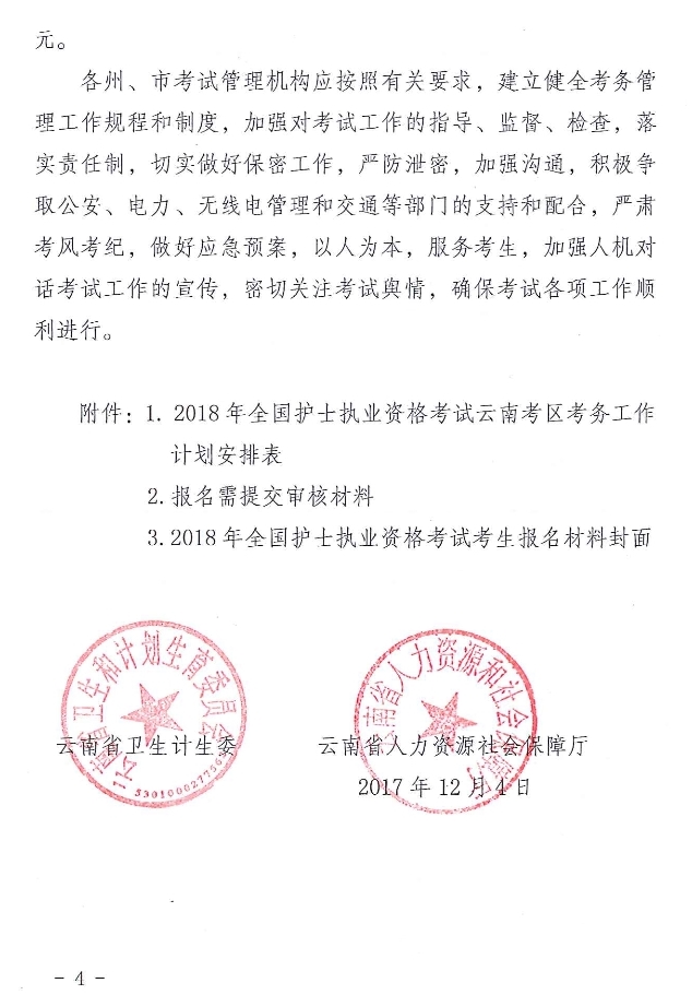 云南省衛(wèi)計(jì)委云南省人社廳關(guān)于做好2018年全省護(hù)士執(zhí)業(yè)資格考試有關(guān)問題的通知
