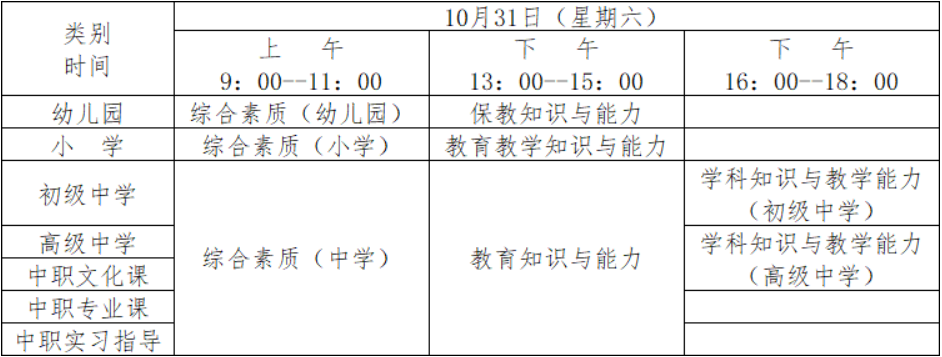 (二)考試時(shí)間:2020年10月31日,所有考試科目均采用紙筆方式進(jìn)行,具體安排如下: